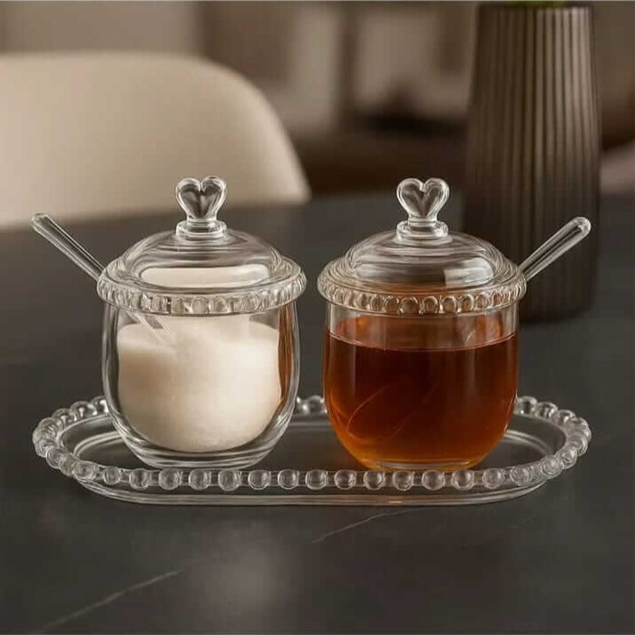 Kit 3 Peças: Açucareiro, Meleira e Travessa de Cristal - Sofisticação em cada detalhe.