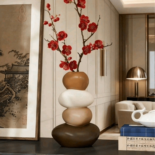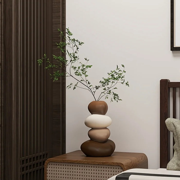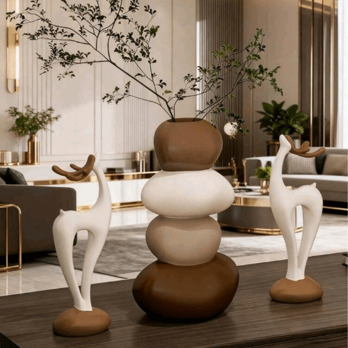 Kit Vasos Decorativos Criativos Cervo com Pedras Empilhadas