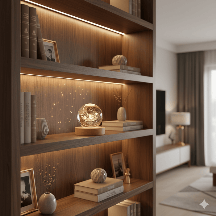 A Curadoria Casaê apresenta a Luminária Noturna de Bola de Cristal 3D – Sistema Solar, uma peça artística que combina iluminação suave, design astronômico e acabamento premium para transformar qualquer ambiente em um espaço mágico e relaxante.